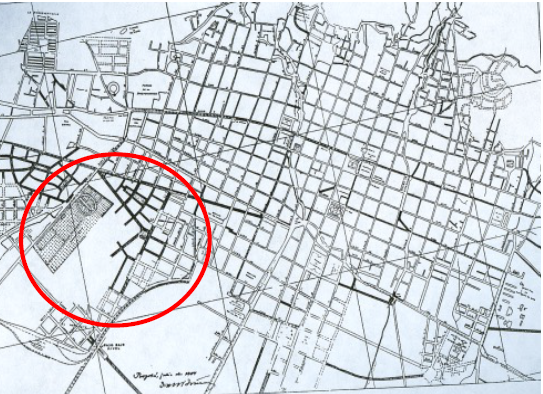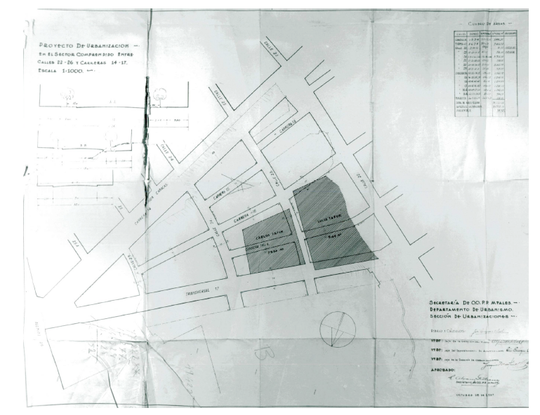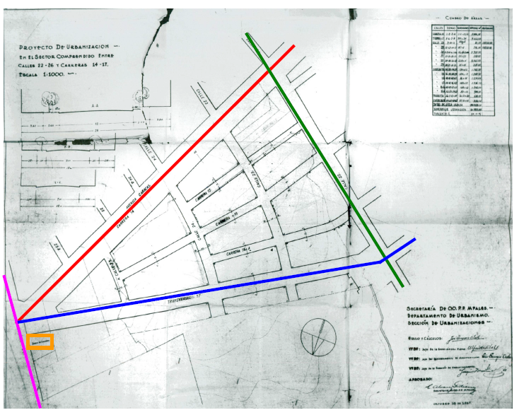 Imágenes de los planos tomadas de la tesis inédita, Patrimonio y Prostitución. Memoria del Barrio Santa Fé, Mary Isbel Rodríguez Reyes, Bogotá, Universidad Nacional de Colombia, 2007