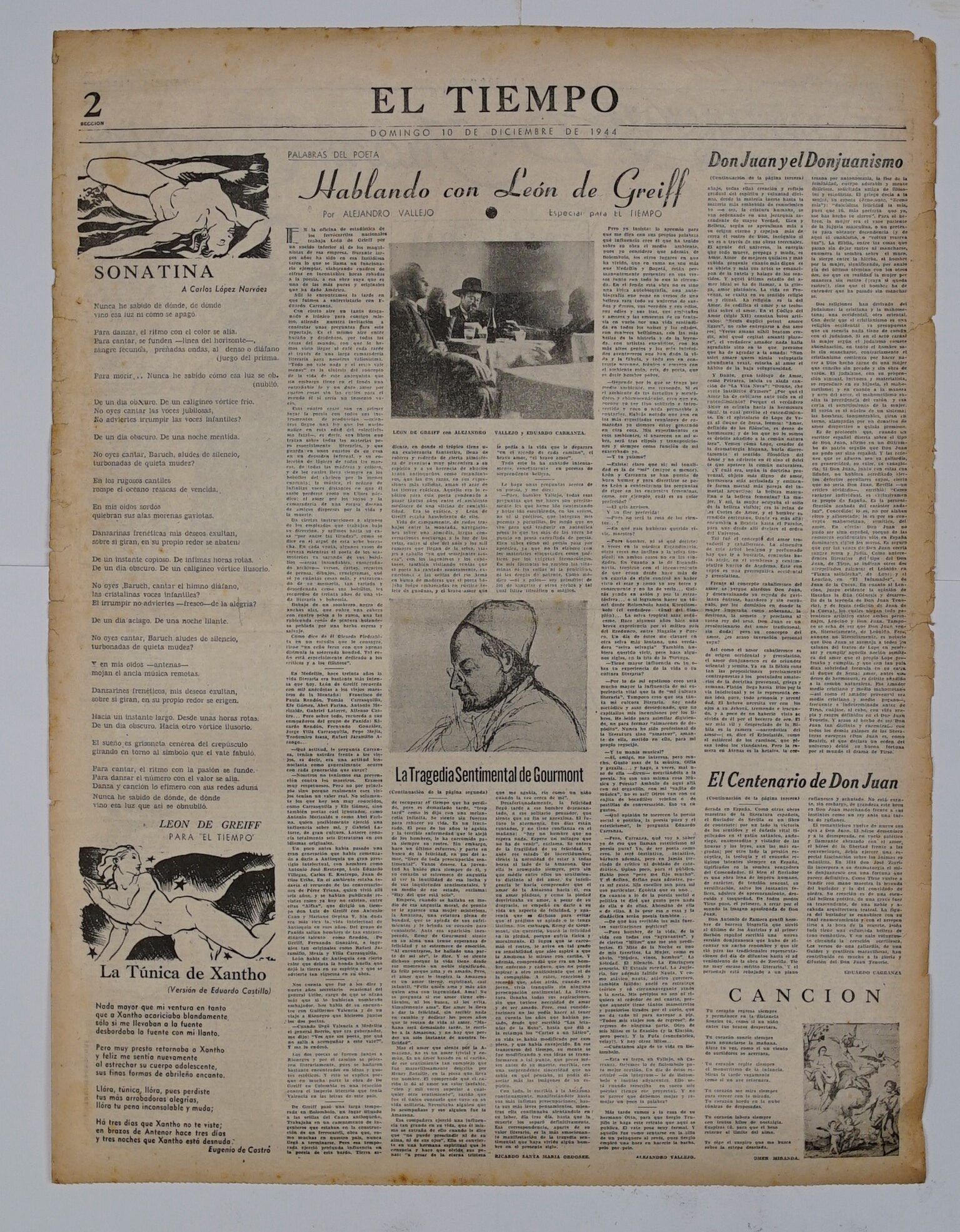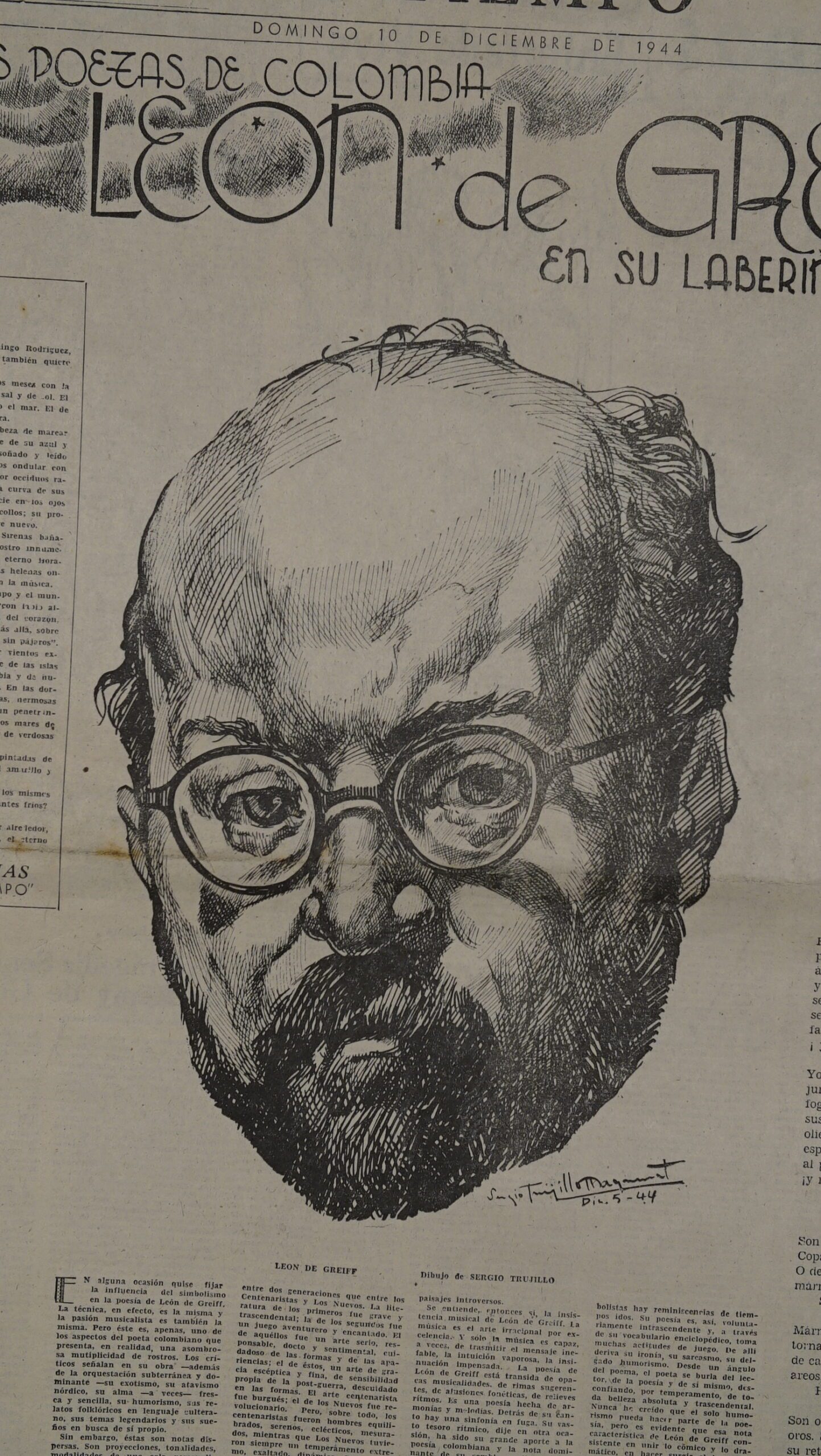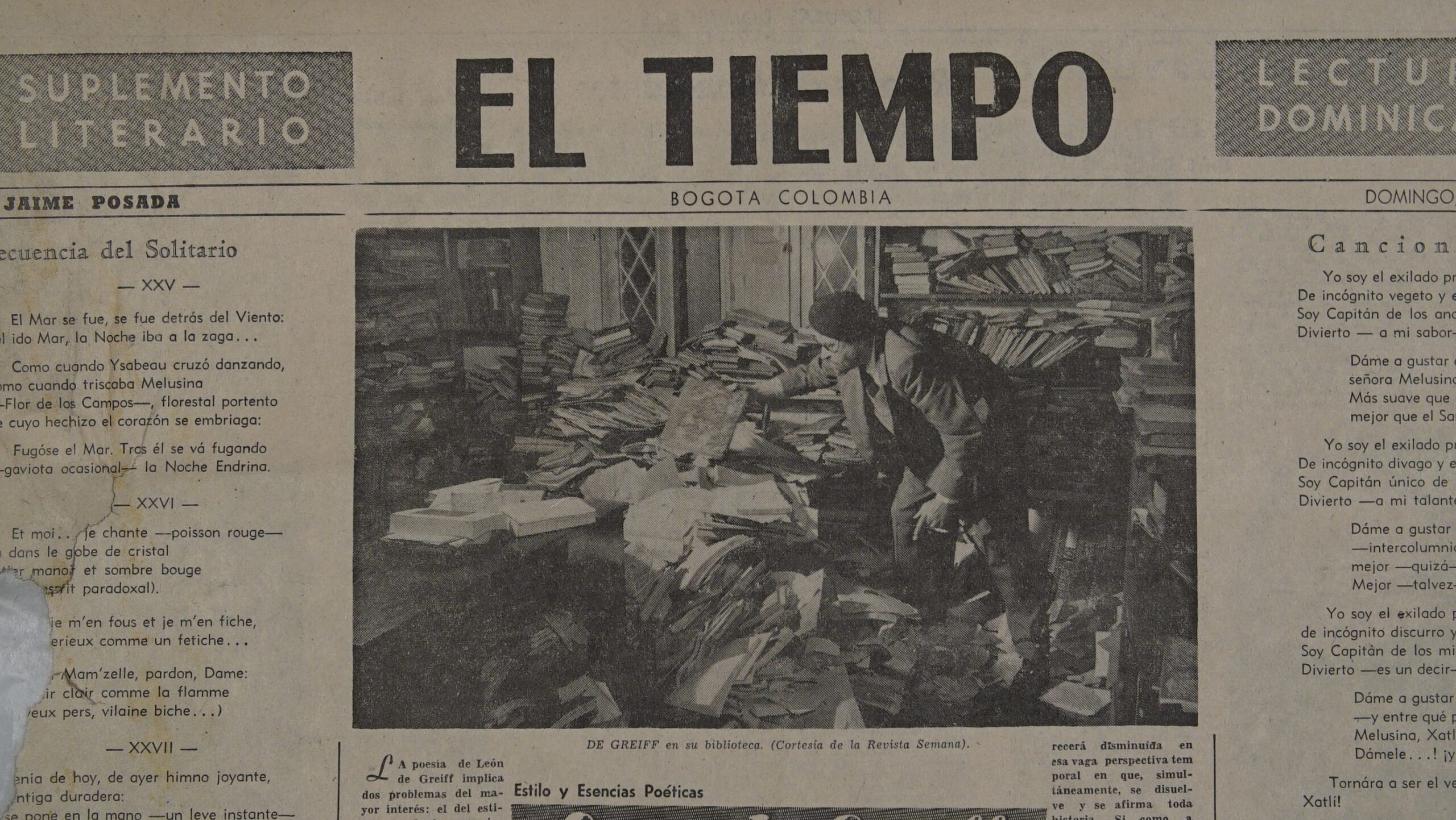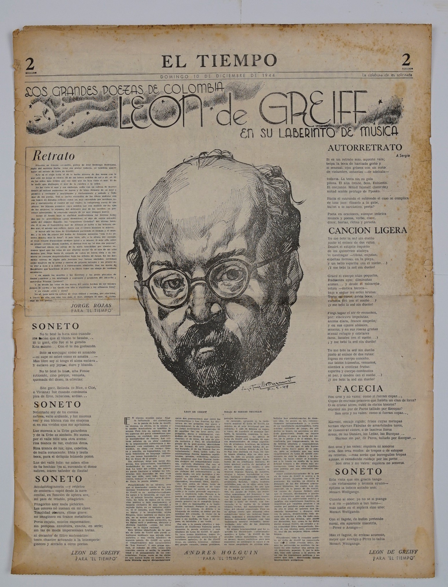 León de Greiff cumple años; estoy en una de sus bibliotecas. Veo a Luis Cabal, a Eduardo y a Jorge Zalamea. Por todas partes hay libros, y discos, hojas de periódico en las que ha publicado, discos, revistas, discos y libros y libros. Es como si aquí se reuniera lo mejor del mundo creado por el arte tipográfico.